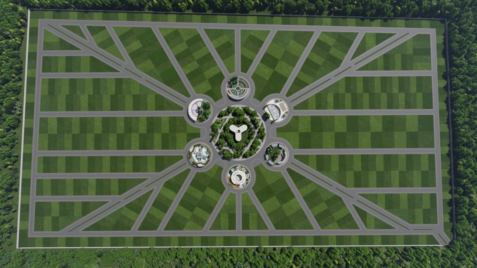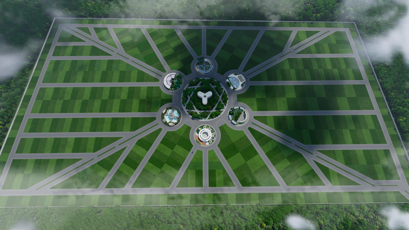 Cuenta con un diseño urbanístico en forma de cubo de metatrón